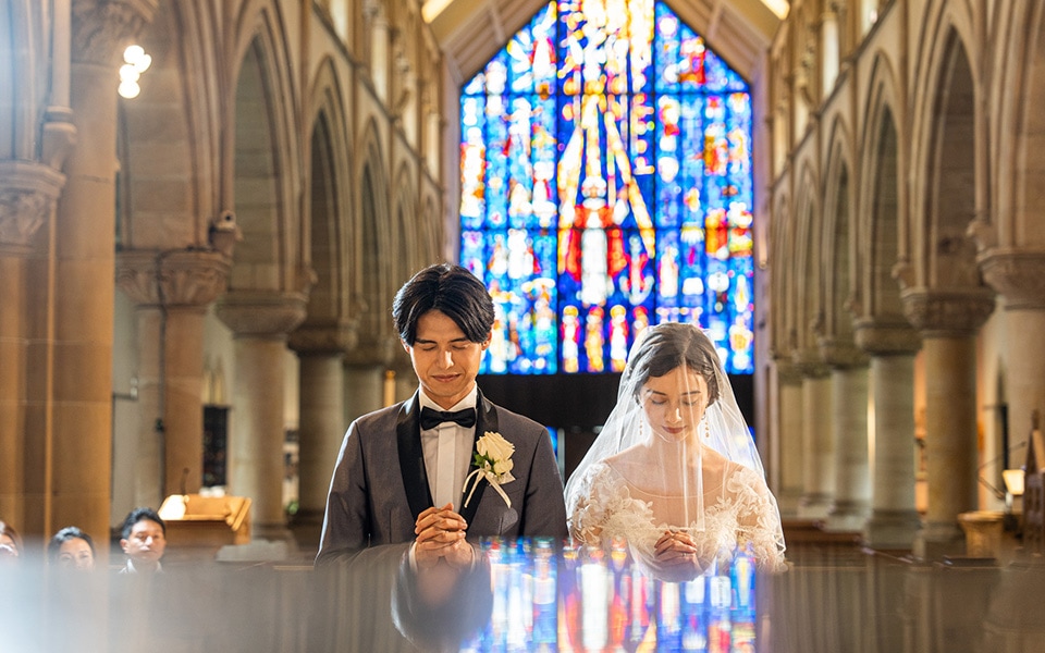 ステンドグラスが美しい中聖堂で、格調高くも心温まるセレモニーを