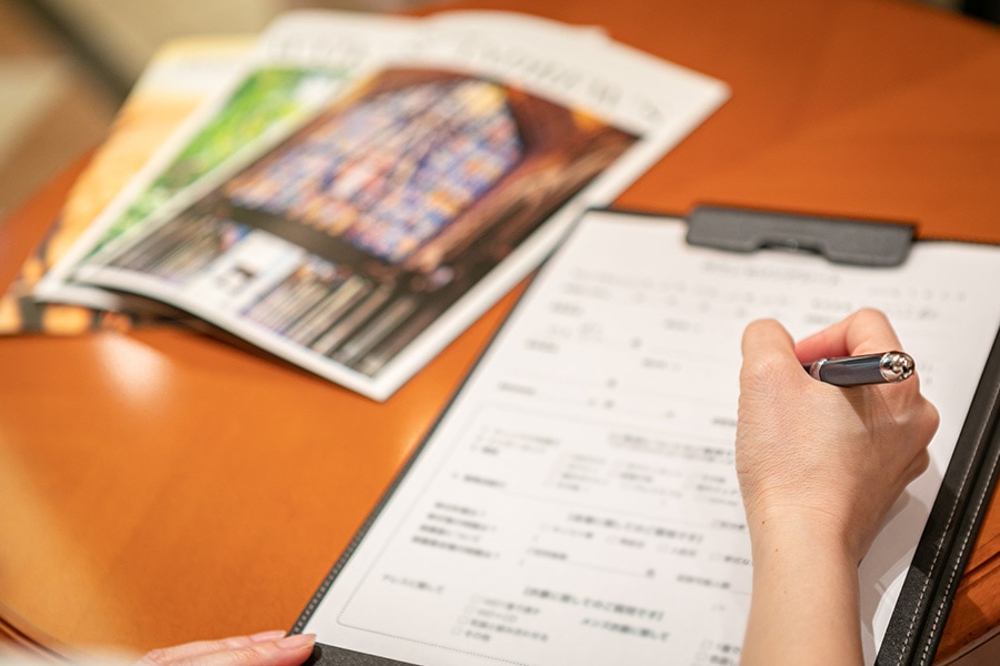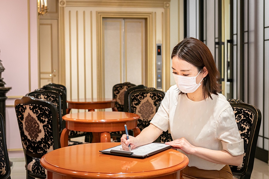 お支度部屋にて最終衣裳合わせ。手配内容および撮影の打合せ(約60分)
