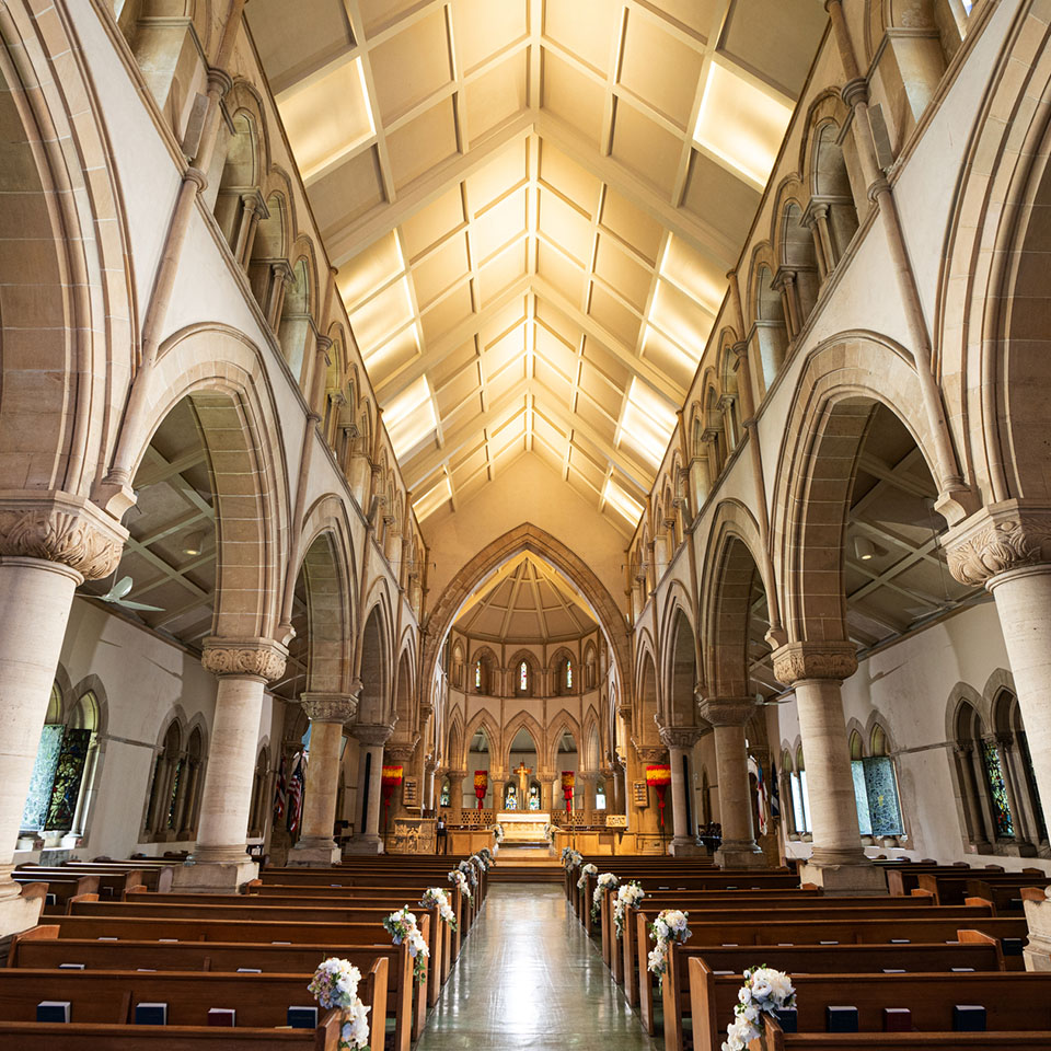 ハワイ王朝の伝統を象徴する「セント・アンドリュース大聖堂」は、天井まで届く壁一面のステンドグラス、47mもの長いバージンロード、パイプオルガンなど、荘厳な雰囲気が漂う。時代を越え、何十年後も変らない姿で建つハワイ最大級の大聖堂でのフォトウエディングを期間限定で叶えることができます。