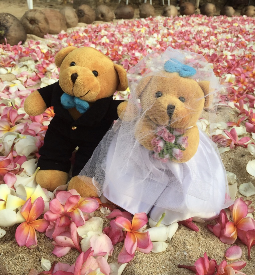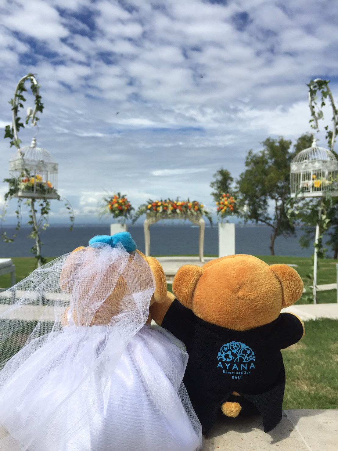 「アヤ」がついている方にはアヤナリゾートのロゴが入ったウエディングカップルベアを