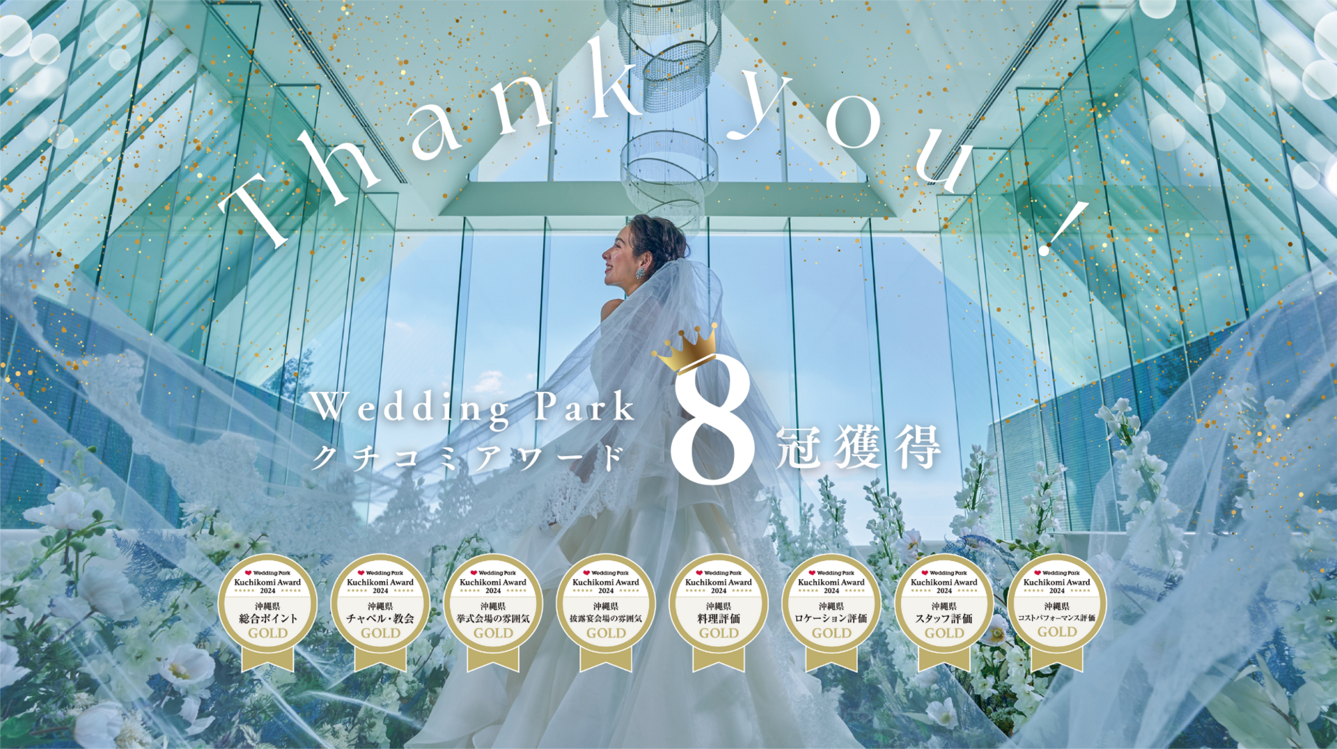 ウエディングパーククチコミアワード2024とは、結婚準備口コミ情報サイトWeddingParkが、同サイトにおける2023年1月~12月のクチコミランキングを元に発表した年間アワードで、各都道府県×ジャンルごとに最も評価の高い式場をGOLD、評価の高い式場をSILVERとして選出されています。