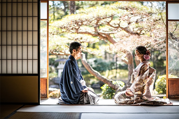 国登録有形文化財に選定されている東山荘。四季を感じる日本庭園や茶室で、本格的で趣のある撮影を楽しめます。