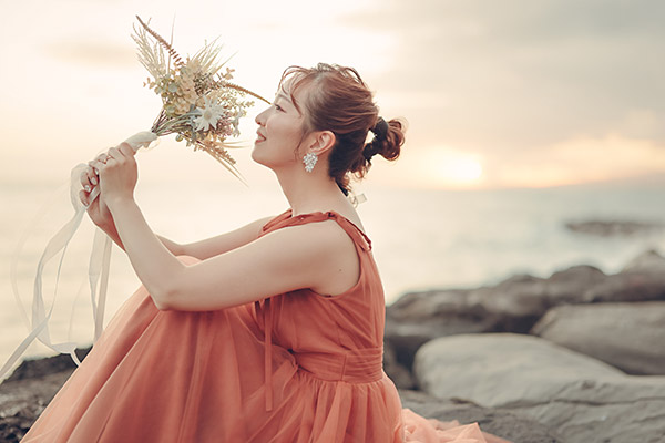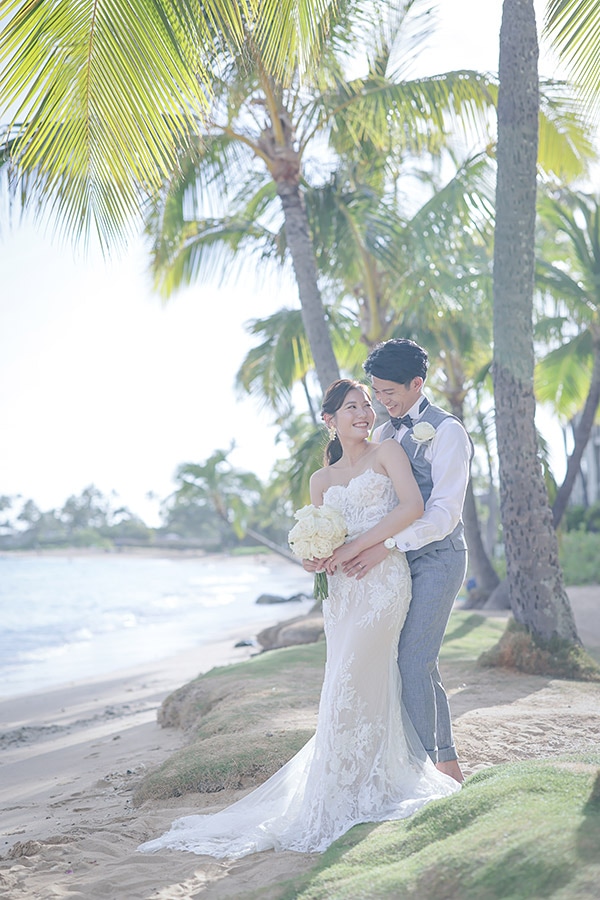 「静寂な教会ウェディングの少し緊張感のある表情や仕草、美しいハワイの景色の中で弾けるようなお二人の笑顔や自然な姿、そんな一瞬を逃さず写真に残したいと思っております。」