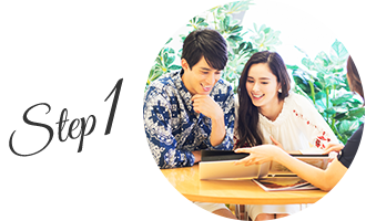 申込から撮影当日まで、衣裳・着付け・ヘアメイク・アルバム・撮影スポットのアレンジなど、面倒な手配がすべてクチュールナオコの窓口だけで完結。経験豊富なスタッフがトータルプランニングし、当日もきめ細やかで手厚くサポートします。安心してお任せください。
