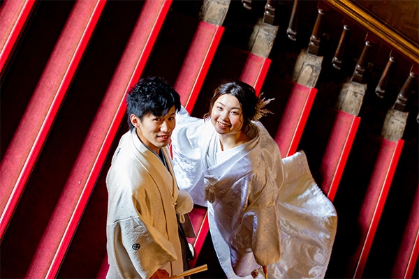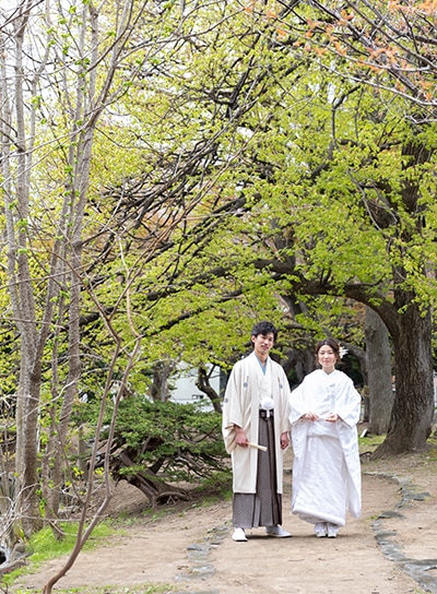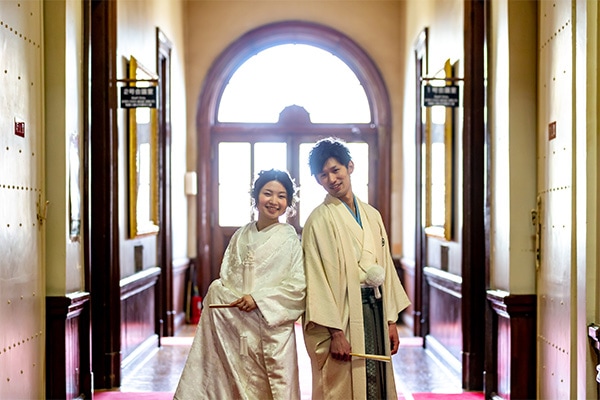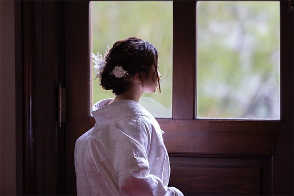| 和装に変更 | (神殿使用) (白無垢または色打掛1点、黒紋付1点) ※基本小物・着付け小物、かつら、かんざしがつきます。 | ¥55,000 |