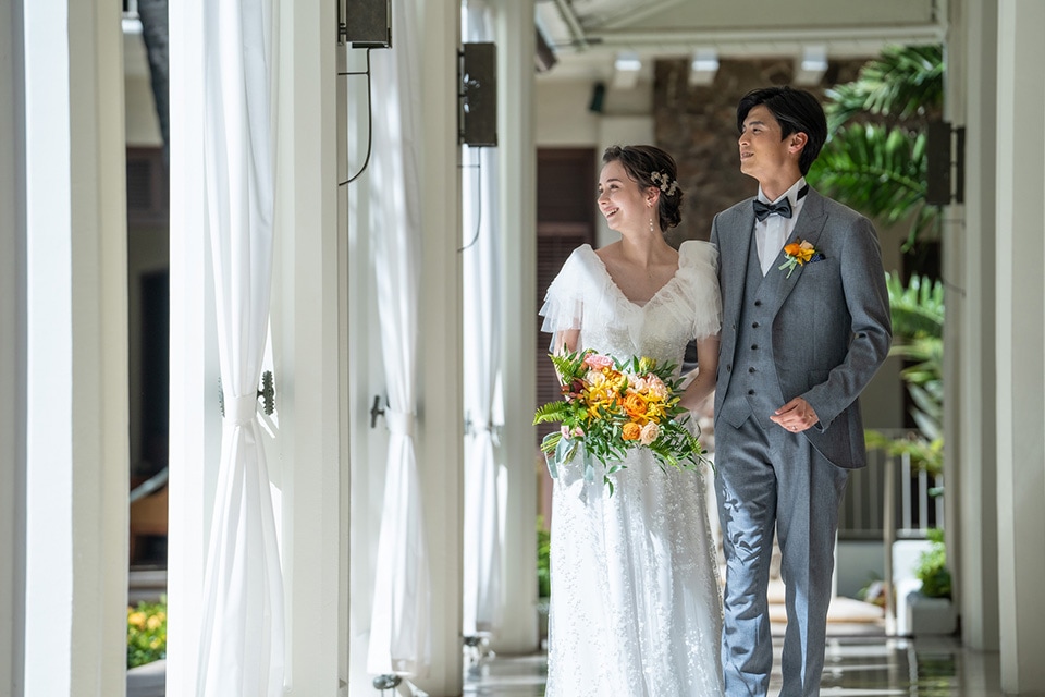 フォトツアーではカジュアルなダウンスタイル、セレモニーでは清楚なアップスタイルなどがらりと雰囲気を変えるのも素敵!