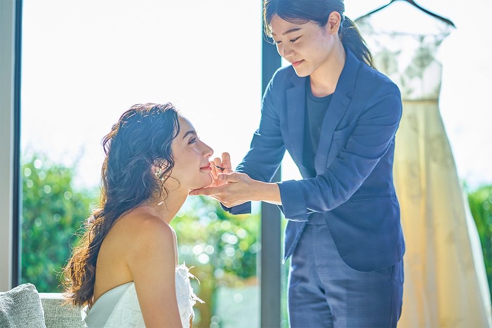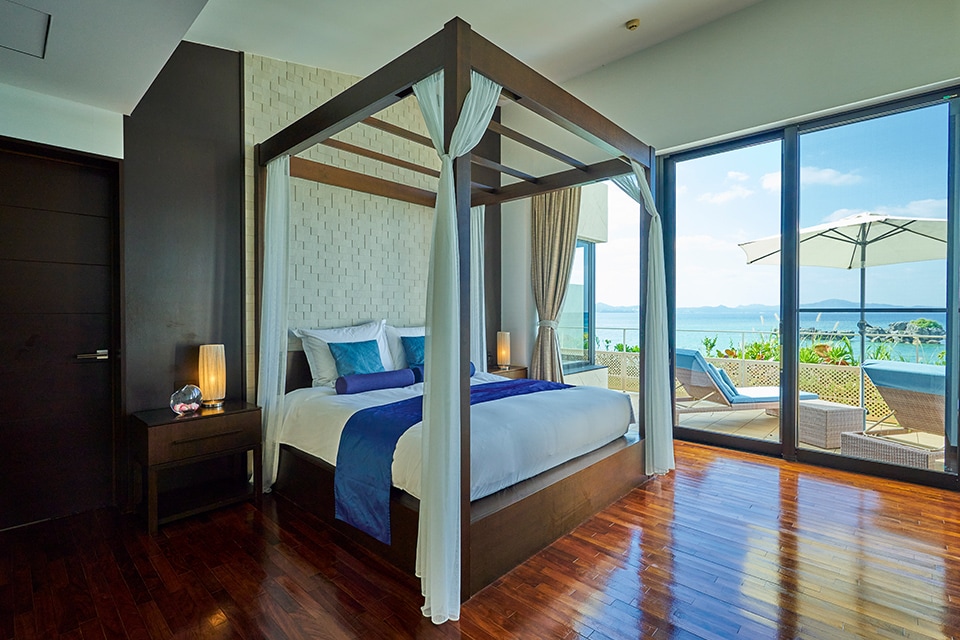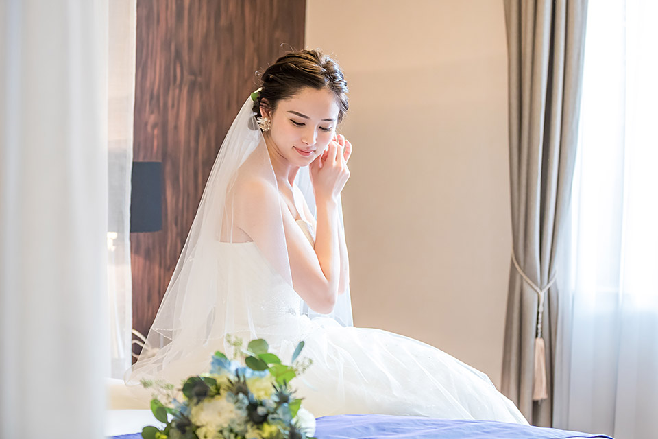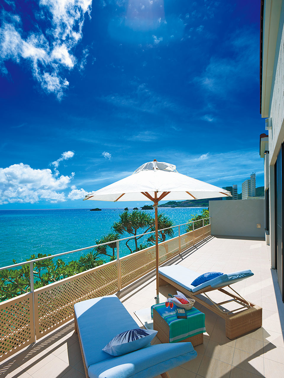 挙式前夜は新郎新婦専用のヴィラスイートで夢のようなステイを。バルコニーやバスルームからは沖縄の海が一面に臨めます。デイベットでゆったりとした時間を過ごして。アメニティも充実し挙式当日のヘアメイクの準備もご宿泊のお部屋でできて安心です。