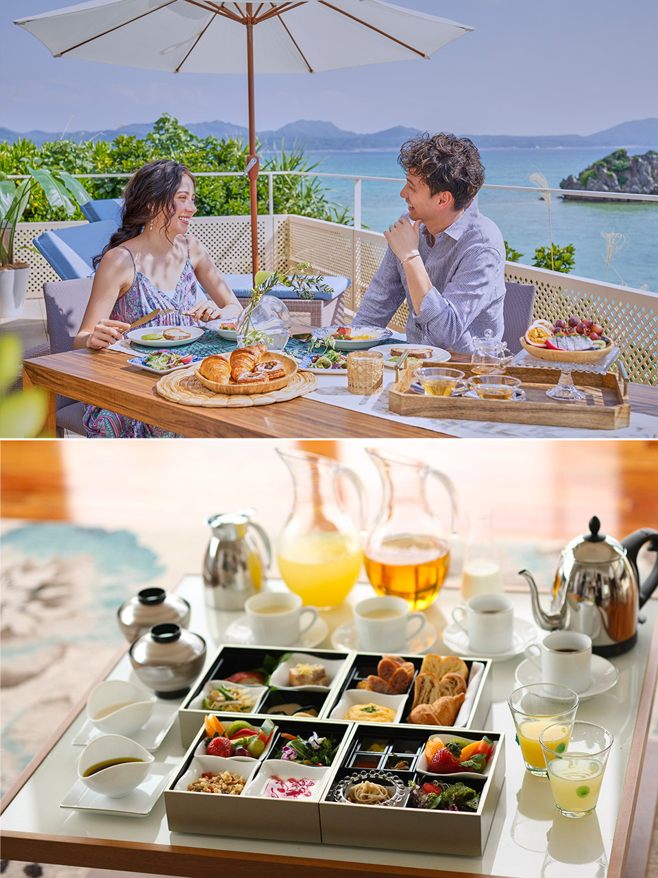ヴィラスイートでゆっくりとした朝食を。新郎新婦専用の宿泊施設だからこそ叶う、ふたりだけの時間。チェックアウト後は沖縄旅行を楽しんで。