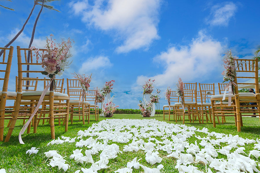 プルメリアに囲まれたガーデンでの挙式は