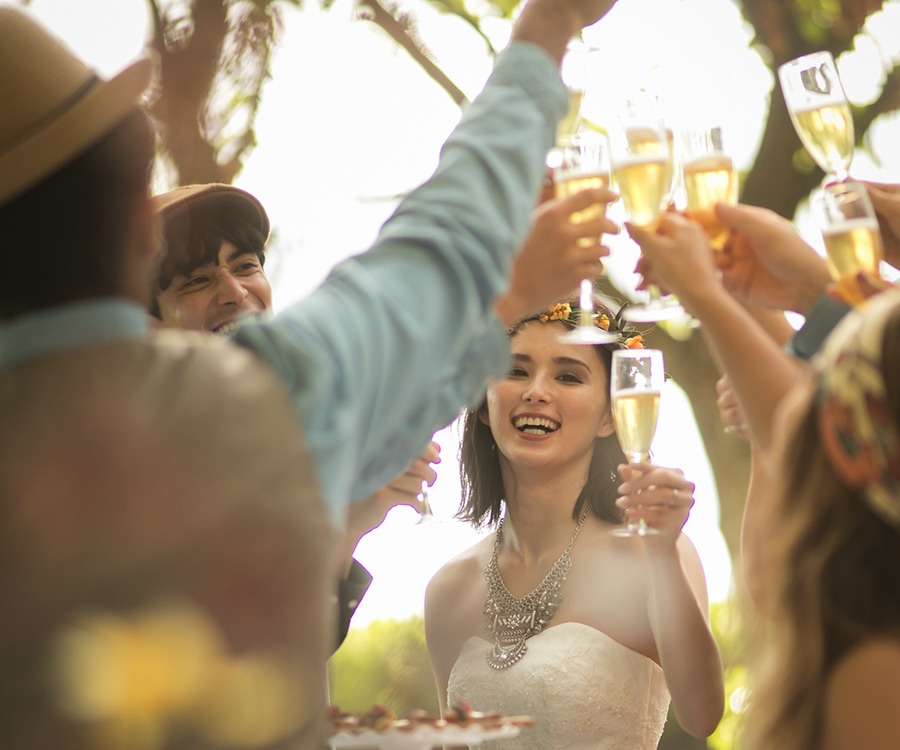 セレモニーの余韻に包まれたまま黄昏色の空にグラスを掲げれば、