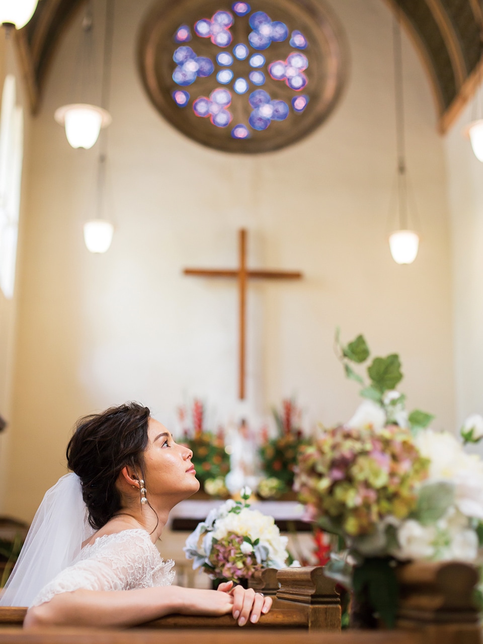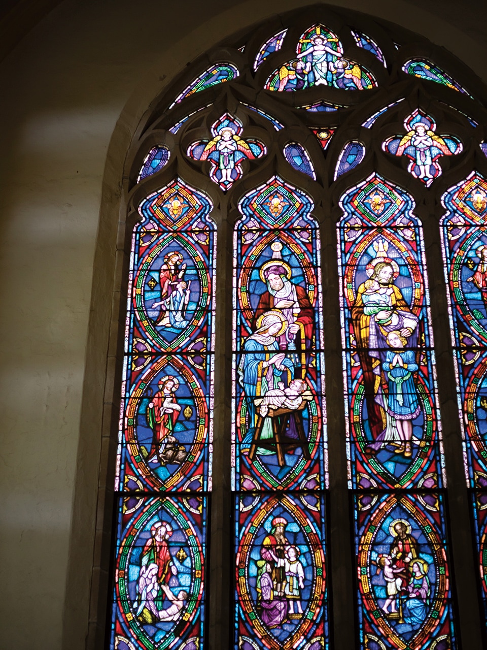 対となる後方のステンドグラスと呼応するように輝き、