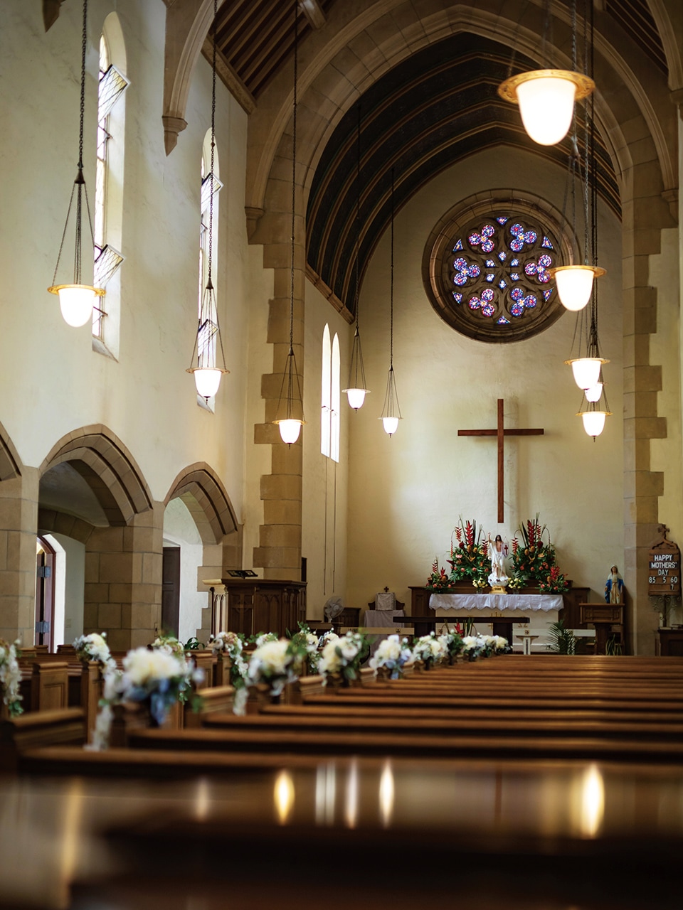 アーチ型の高い天井の下に伸びる長いバージンロード。