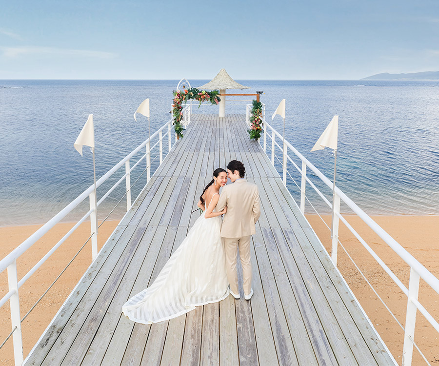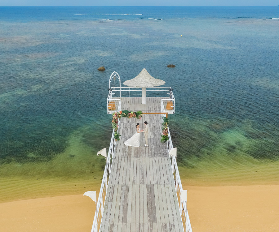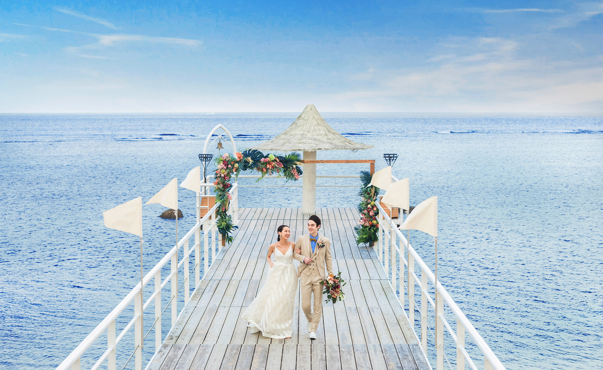 空と海と太陽に抱かれたカップルの聖地「Fusaki Angel Pier」。ここにしかない抜群のロケーションでセレモニーを。