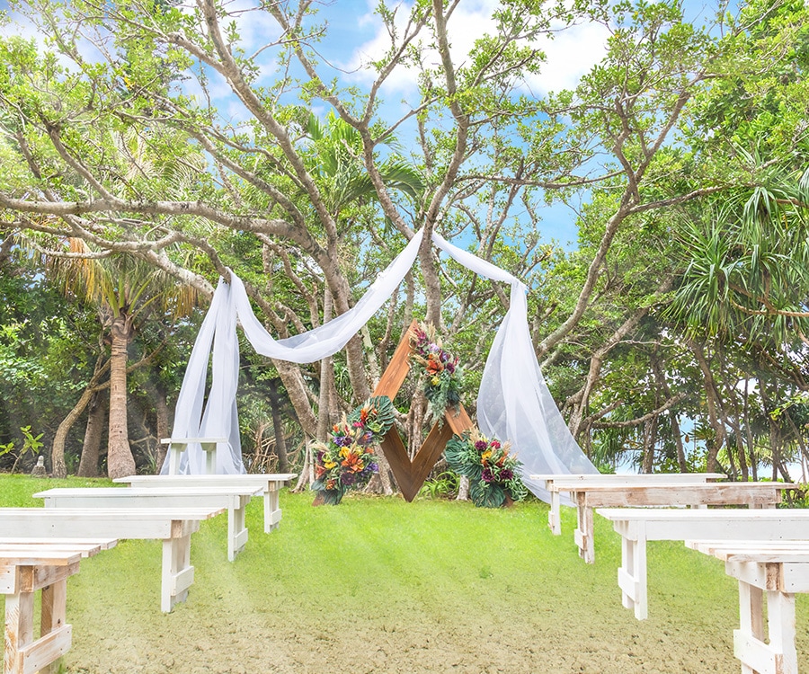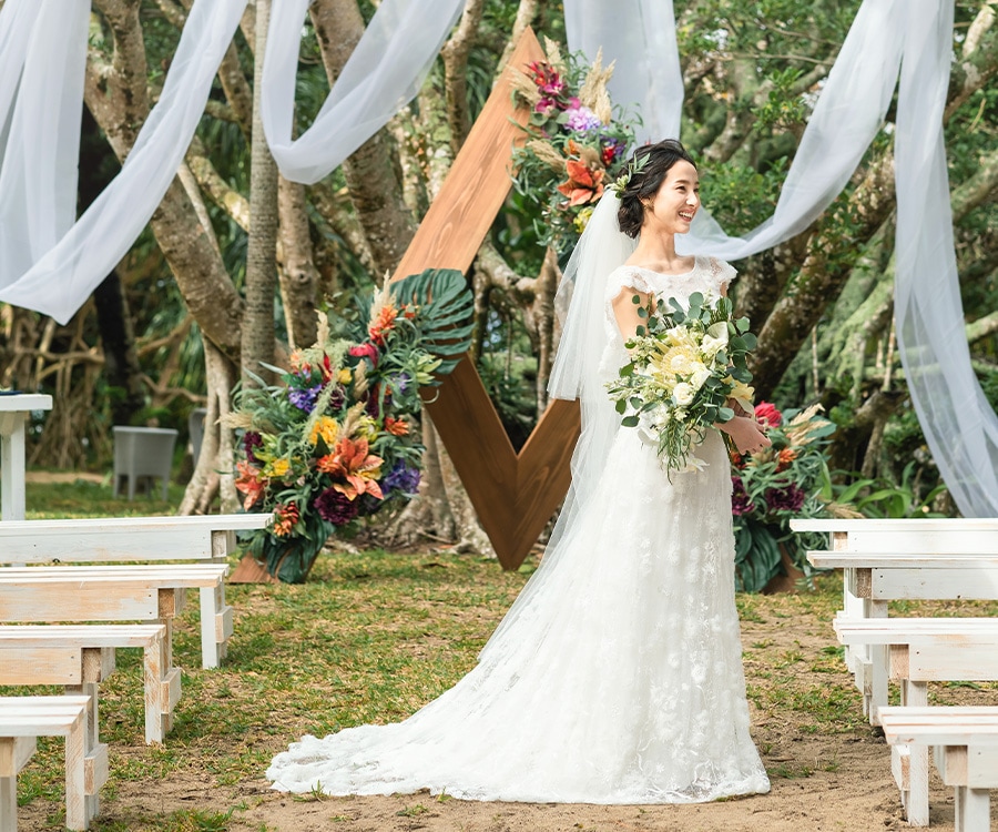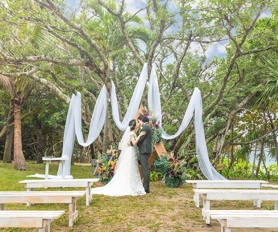 透きとおる海、真っ白な砂浜、八重山諸島の豊かな自然の中でのリゾートウエディング。