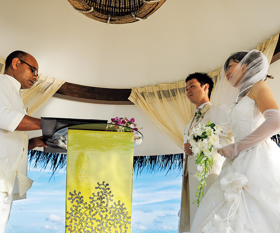 ここでのウエディングは海に張り出したガゼボ「ムーンデッキ」で。