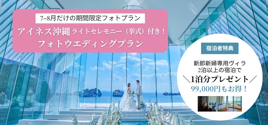 アイネス ヴィラノッツェ 沖縄で挙式をされるおふたりは新郎新婦専用のヴィラスイートにご宿泊いただけます(別途宿泊料金)。またアイネス ヴィラノッツェ 沖縄から徒歩5分の「ホテルリゾネックス名護 」、アイネス ヴィラノッツェ in カヌチャベイ~グラン・ブルーチャペル~が建つ「カヌチャリゾート 」と提携しており、ご親族やご列席者の宿泊も安心です。石垣島では「フサキビーチリゾート ホテル&ヴィラズ、「アートホテル石垣島 」をご紹介させていただきます