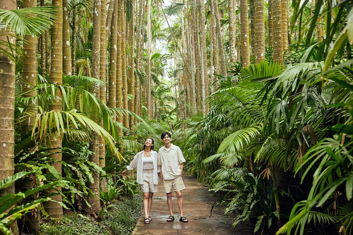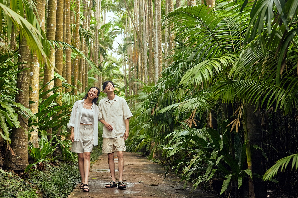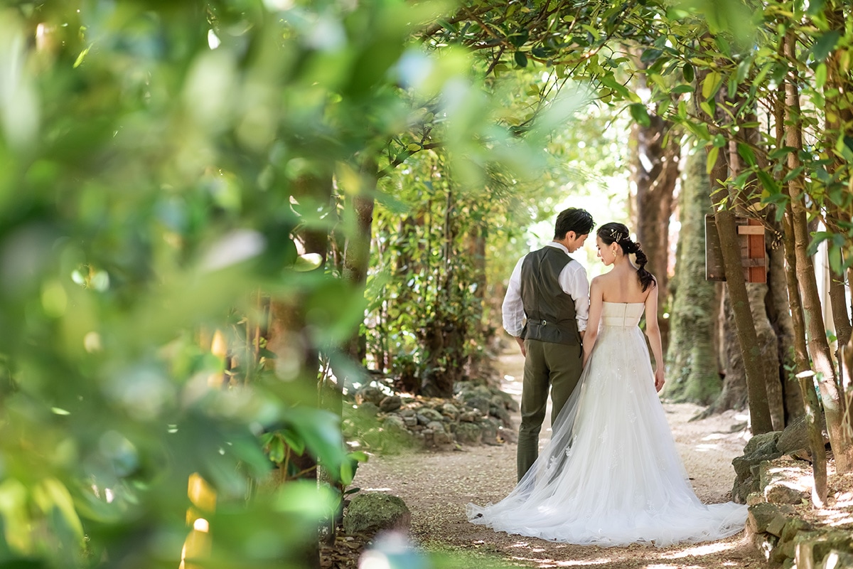 ハイビスカスやブーゲンビリア、椰子の木やモモタマナの木など、沖縄の離島ならではの自然を感じる、八重山方言で「美しい羽」を意味する「アヤパニ」と名付けられた広大なフサキガーデンでウエディング。