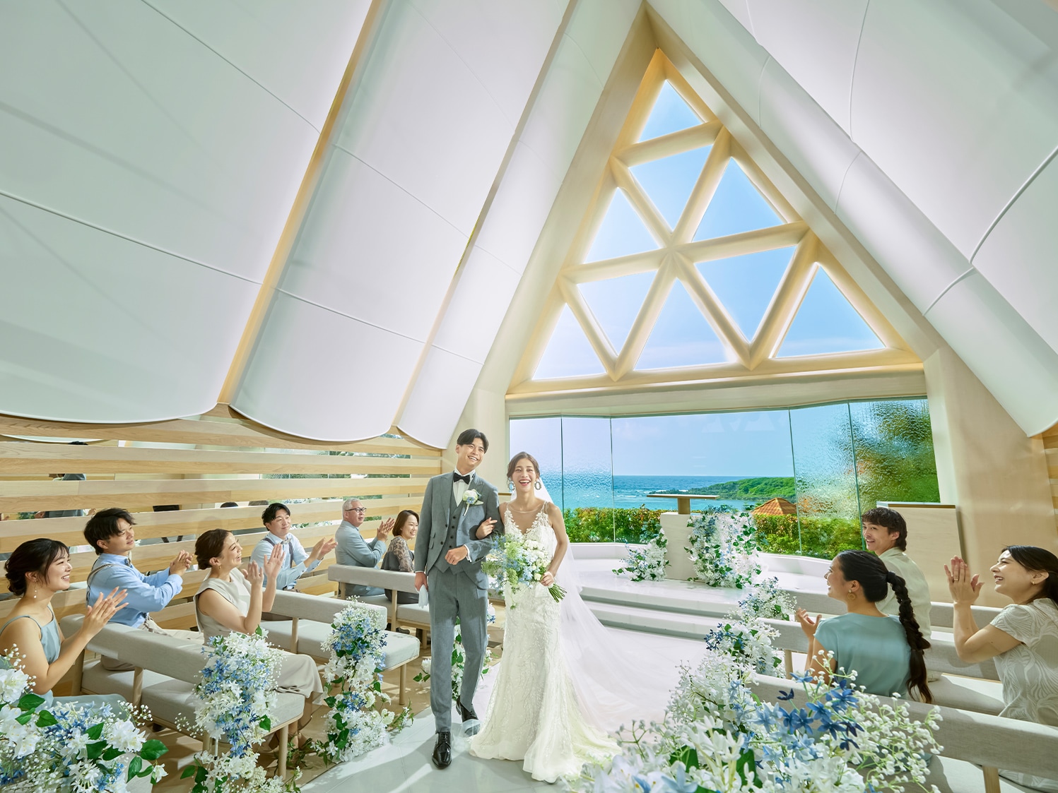 沖縄の大自然を360度臨む「グラン・ブルーチャペル」。広大な楽園リゾートホテルで叶える沖縄ウエディング。自然に抱かれた遥かなるランドスケープが訪れた人の心と体を優しく包み込みます。