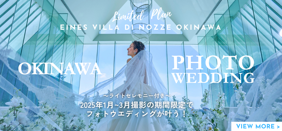 沖縄挙式の場合、一般的には3泊4日で実施される方が多いですが、最短で2泊3日で行うことができ、長期のお休みが取れない場合でも結婚式が可能です。 1日目は現地到着日となりますので、ゆっくりとお過ごしいただき、2日目に挙式・パーティーや写真撮影を行っていただき、次の日より観光をお楽しみいただくのがおすすめです。 挙式後の観光をゆっくり楽しみたい場合には、+2~3日あると滞在地から島内各地に足を延ばして観光を満喫できます。