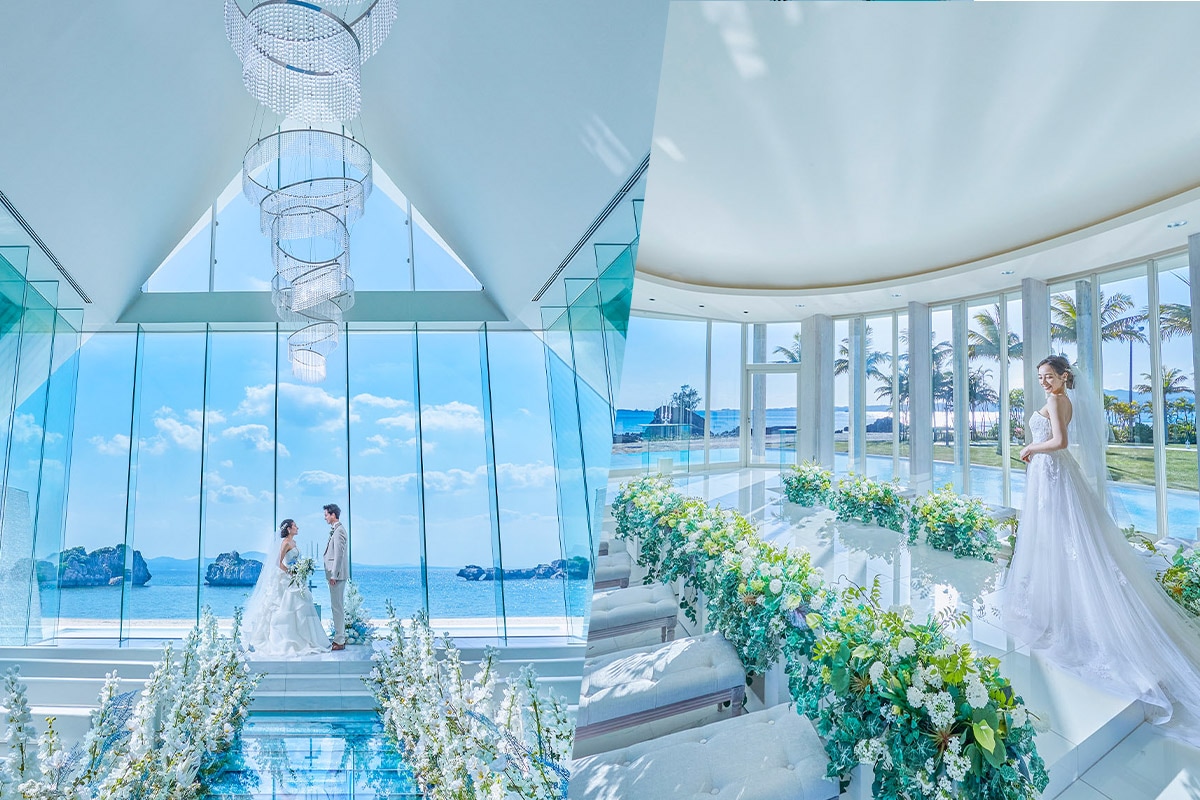 沖縄の大自然を360度臨む「グラン・ブルーチャペル」。広大な楽園リゾートホテルで叶える沖縄ウエディング。自然に抱かれた遥かなるランドスケープが訪れた人の心と体を優しく包み込みます。