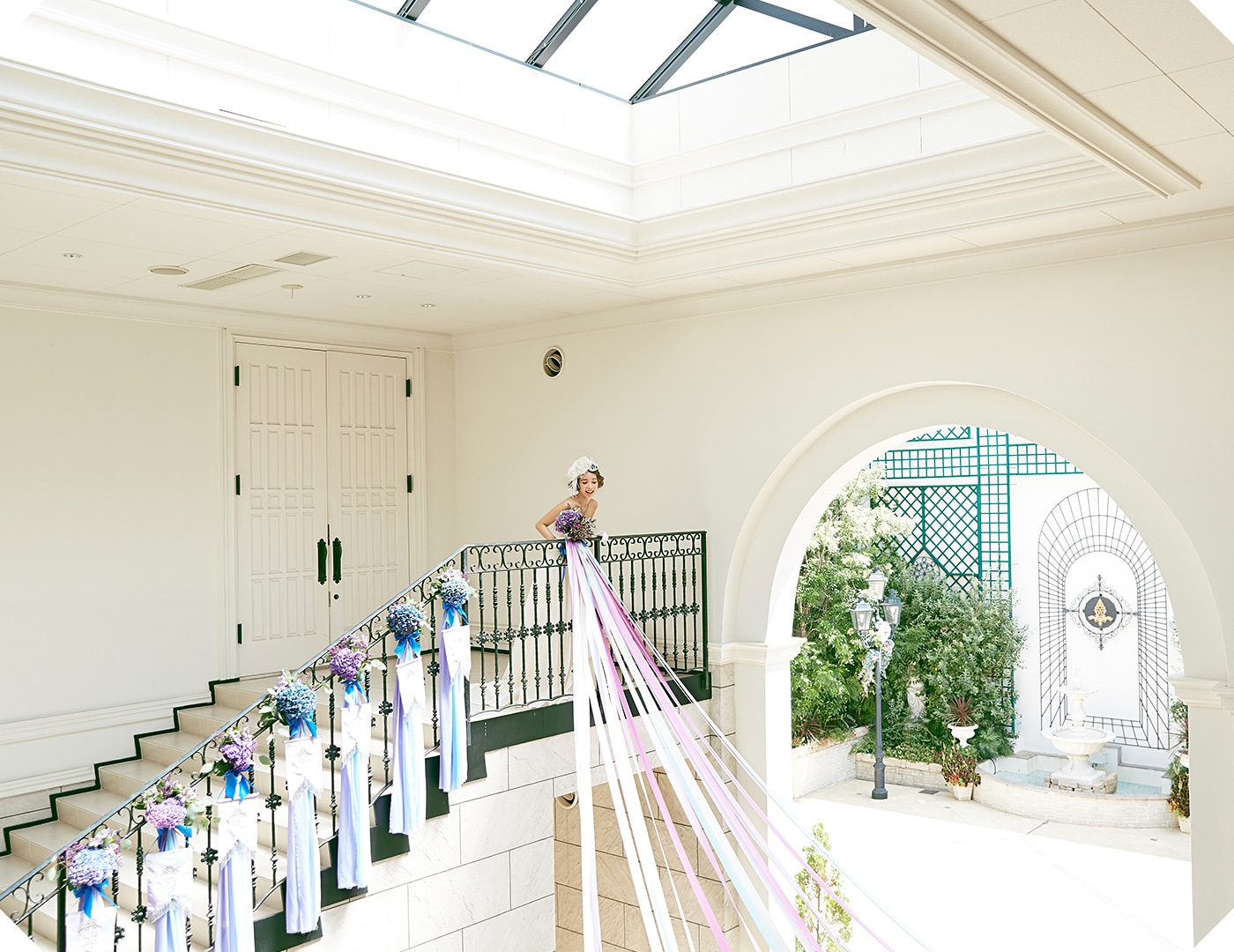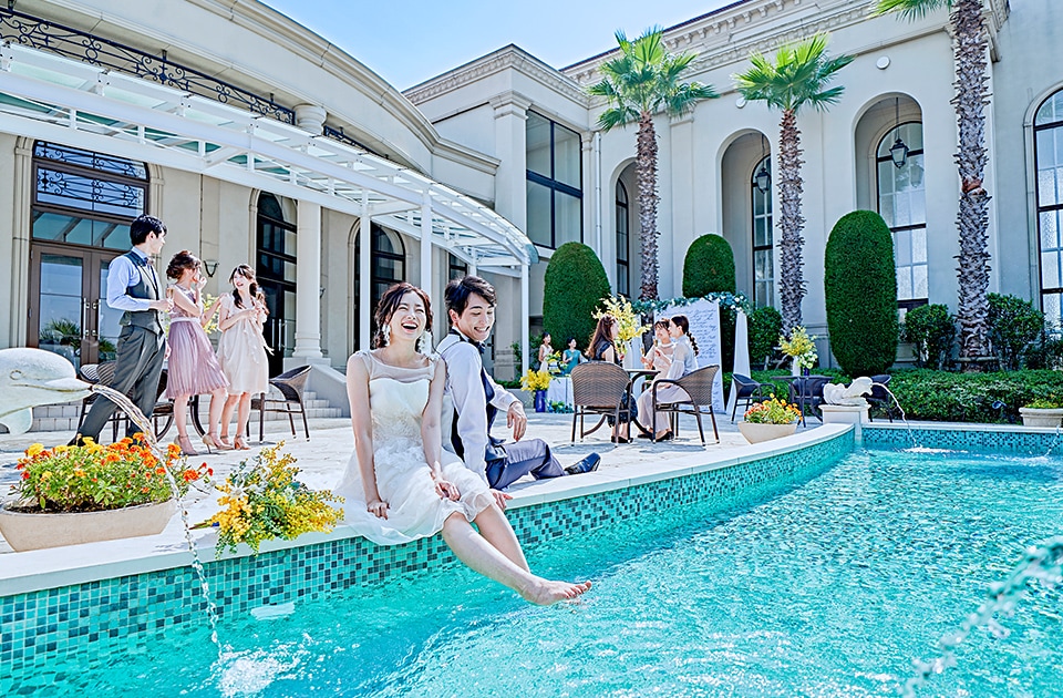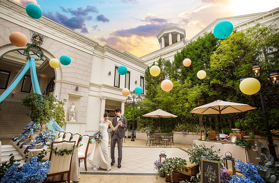 広大な敷地の先に海と空が広がる絶好のロケーションを誇るウエディングリゾート。南仏ニースとオリエンタルリゾートがテーマの2つのバンケット。