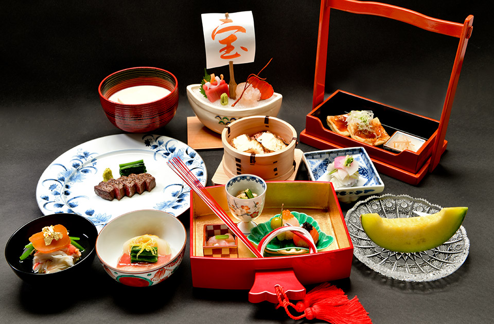 繊細で美しい会席料理は、こだわり抜いた食材を使い晴れの日にふさわしい芸術です。