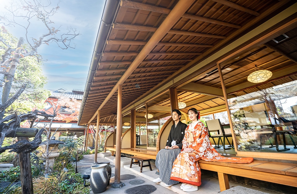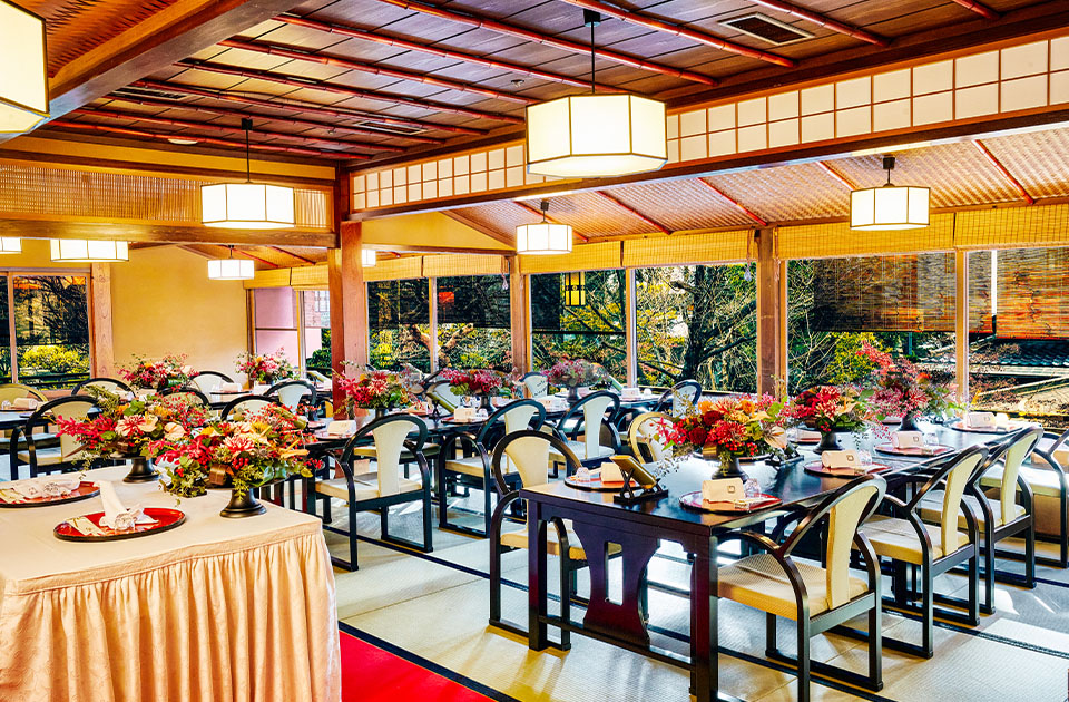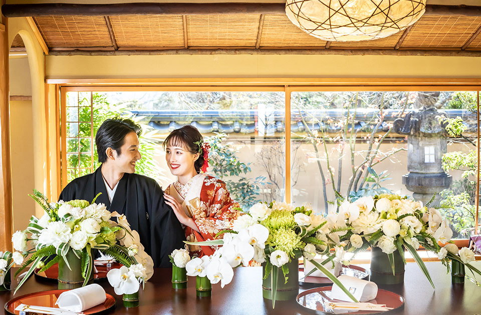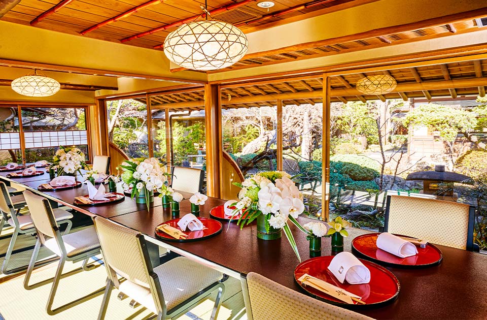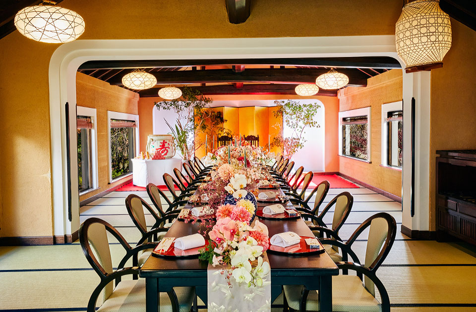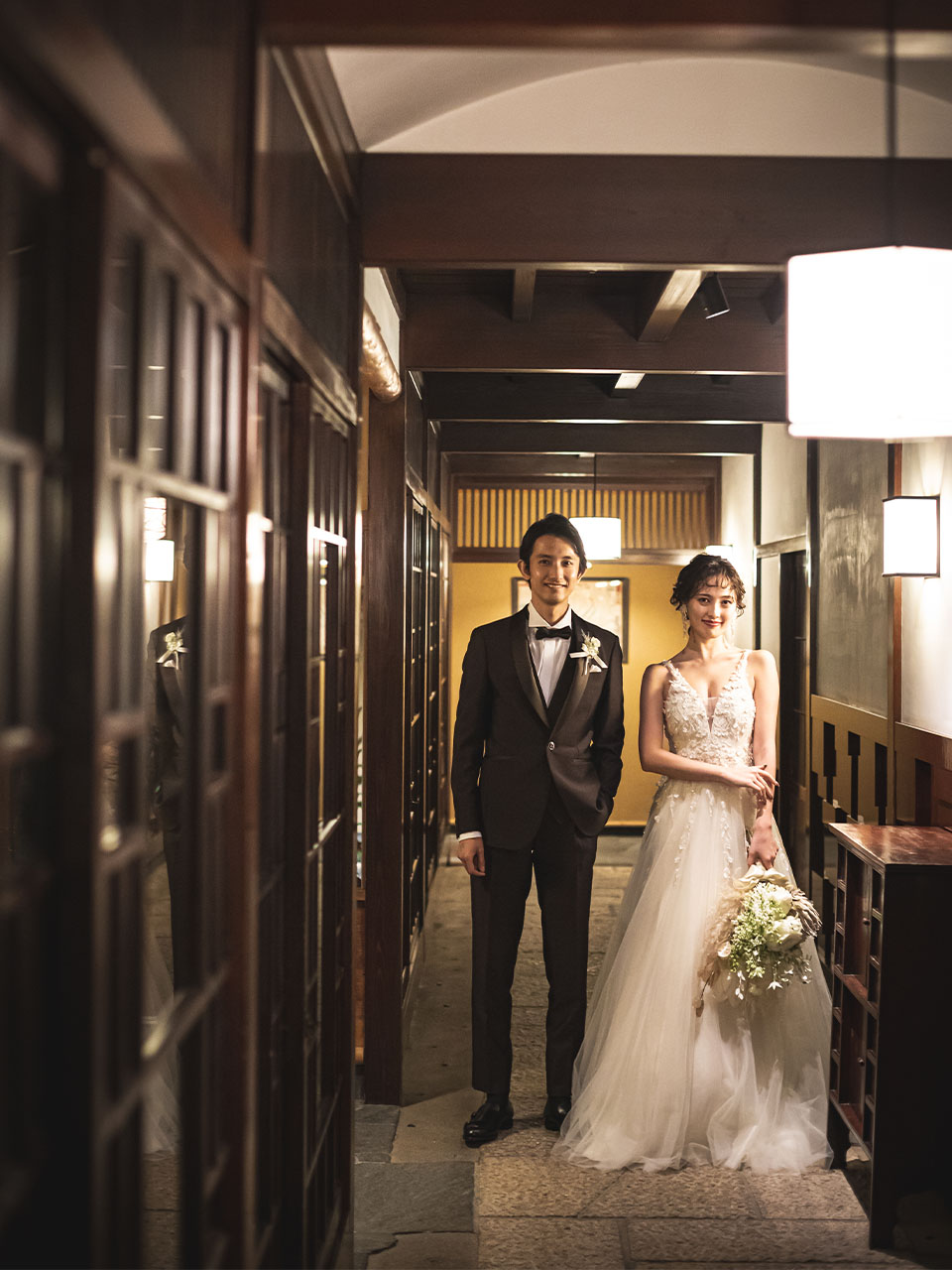 ドレスも似合う料亭です。和と洋を融合した素敵な時間と空間の演出をお楽しみください。