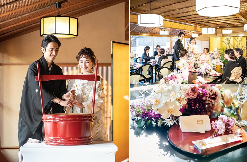 料亭内での「神前式」をはじめ、宗教色のない「人前式」も承ります。