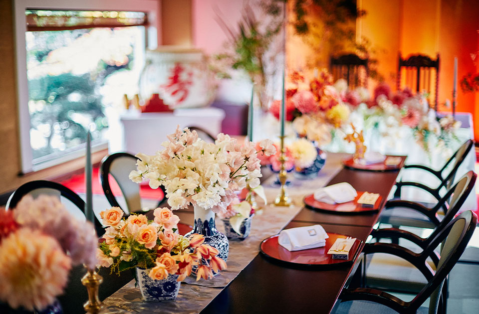 ドレスも似合う料亭です。和と洋を融合した素敵な時間と空間の演出をお楽しみください。